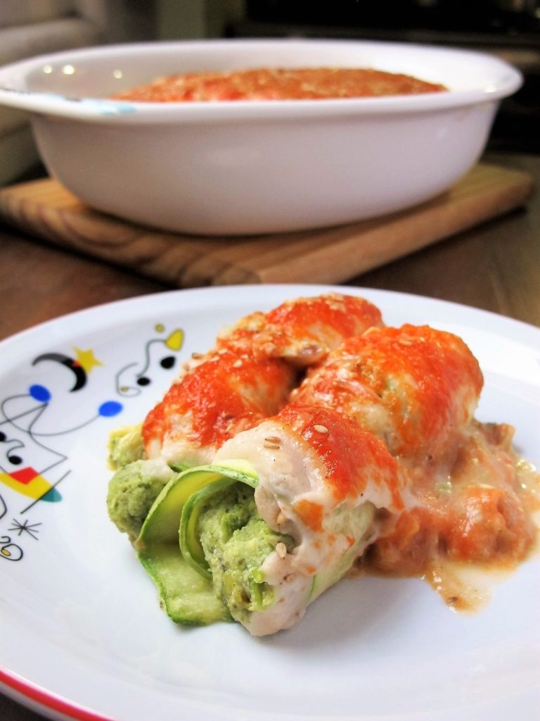 - 3 zucchini - 1 planta de brócoli extra grande o dos flores chicas, o un paquete de congelado. - 350 grs de ricota o, para versión vegana, 1 bloque de tofu semiduro. - 1 cebolla grande y 1 diente de ajo (pueden obviar lo que no les guste) - un opcional para el relleno que sale riquísimo: media taza de arvejas cocidas. - salsa blanca: recomiendo la crema de coliflor vegana que está acá porque queda deliciosa y es muy liviana. Pero si prefieren hagan una salsa blanca tradicional. Yo que ustedes preparo abundante, dos tazas. - salsa de tomate: simple puré de tomate o un fileto liviano, a elección. Aproximadamente una taza. - para espolvorear: si gustan, abundante queso rallado. Podrían usar queso vegetal como los de cajú que se consiguen ahora. Si no, gomasio, semillas de sésamo o los restos de la leche de almendra secados al horno andan fenómeno (es decir, harina gruesa de almendras tostada). Si prefieren usen levadura nutricional pero no es mi estilo. - sal, pimienta, aceite de oliva, nuez moscada a gusto.