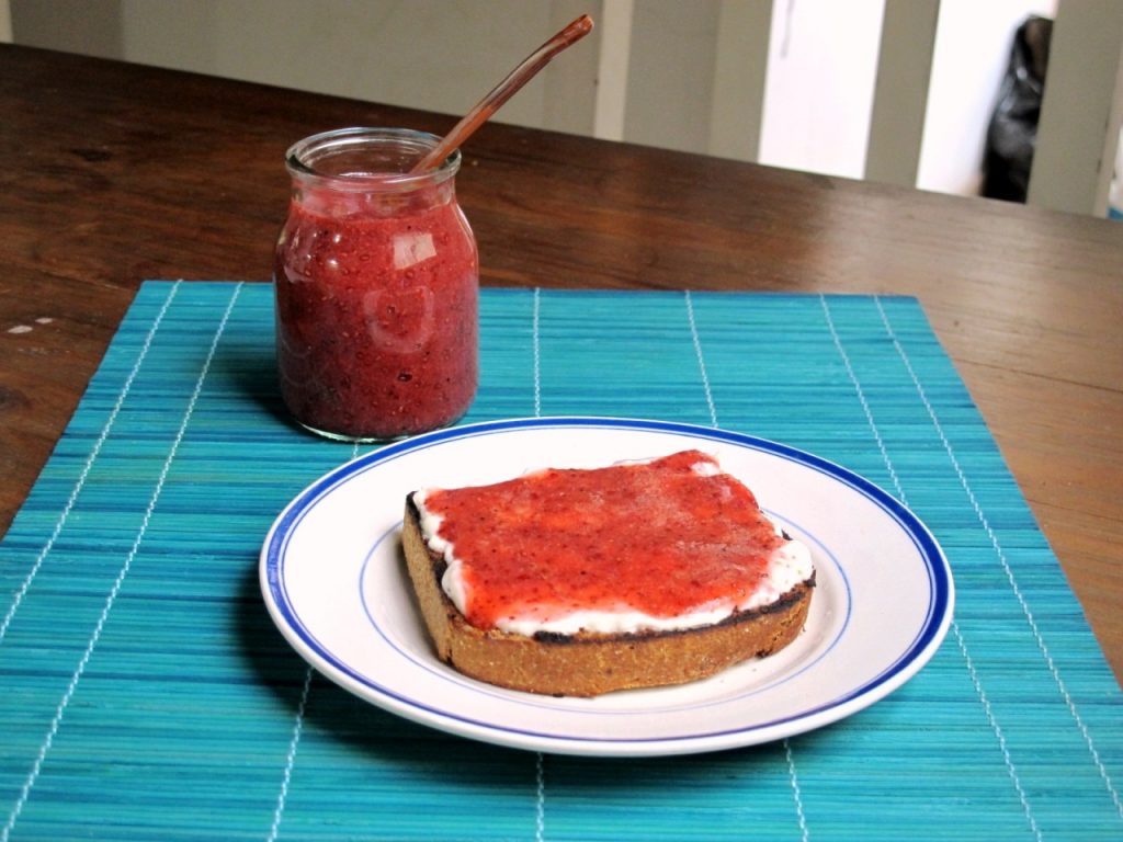 Lavar las frutillas, quitarles los cabos y procesar o licuar. Incorporar la chía gelificada, y saborizar a gusto con el endulzante que prefieras, jengibre, vainilla o la especia que prefieras. Procesar o licuar nuevamente. ¡Es todo! En heladera dura al menos una semana.