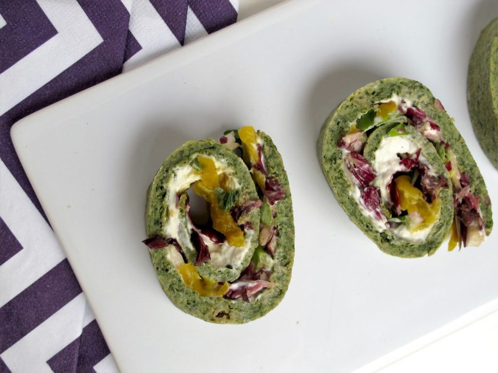 Procesar, licuar o mixear junto con los huevos, o picarlas bien pequeñas y batir los huevos e incorporar. Agregar los demás ingredientes y dejar reposar unos minutos. Llevar a placa aceitada, enmantecada o de silicona creando una capa fina de masa, de unos 5 mm (va a crecer un poquito en el horno). Hornear a 190 grados por quince a veinte minutos, hasta que la superficie esté seca pero no demasiado dorada (o va a dificultarse el plegado para rellenarlo luego).