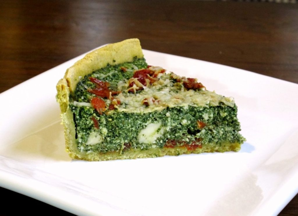 Para la masa: - 1 taza de harina integral - 1 taza de harina de arroz - agua helada - un chorro de aceite de oliva - 3 cucharadas de ricota (se las robamos al relleno) - sal, pimienta, y (opcionales) cúrcuma y tomillo. (La cúrcuma no aporta gran sabor, pero es una especia hipersaludable, económica y da color. Siempre suma…) Para el relleno: - 2 atados de espinacas frescas - 1 cebolla pequeña - 1 cucharada de aceite de oliva - 500 grs de ricota descremada (menos tres cucharadas que robamos para la masa) - 1 huevo y 1 clara - 100 grs de tomates secos, hidratados en agua caliente hasta que se ablanden - queso blando, cremoso o mantecoso, cantidad a gusto: unos 150 grs en daditos van bien. Es opcional, también. - 100 grs de queso rallado (puede ser hasta un gouda, holanda, lo que tengas) - sal, pimienta, mucha nuez moscada, un toquecito de azúcar mascabo.