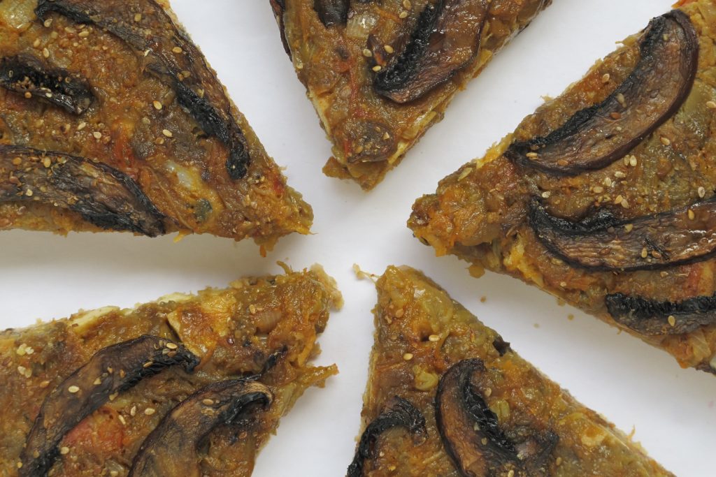 Esta tarta es un hit. Es impresionante cómo puede salir un plato tan distinto con la misma “información genética”. El relleno es cosa de turcos: mucha berenjena con tomate, especias y un toque dulce en lo salado. La masa integral y con mijo escapa a cualquier nacionalismo. Juntos son dinamita.