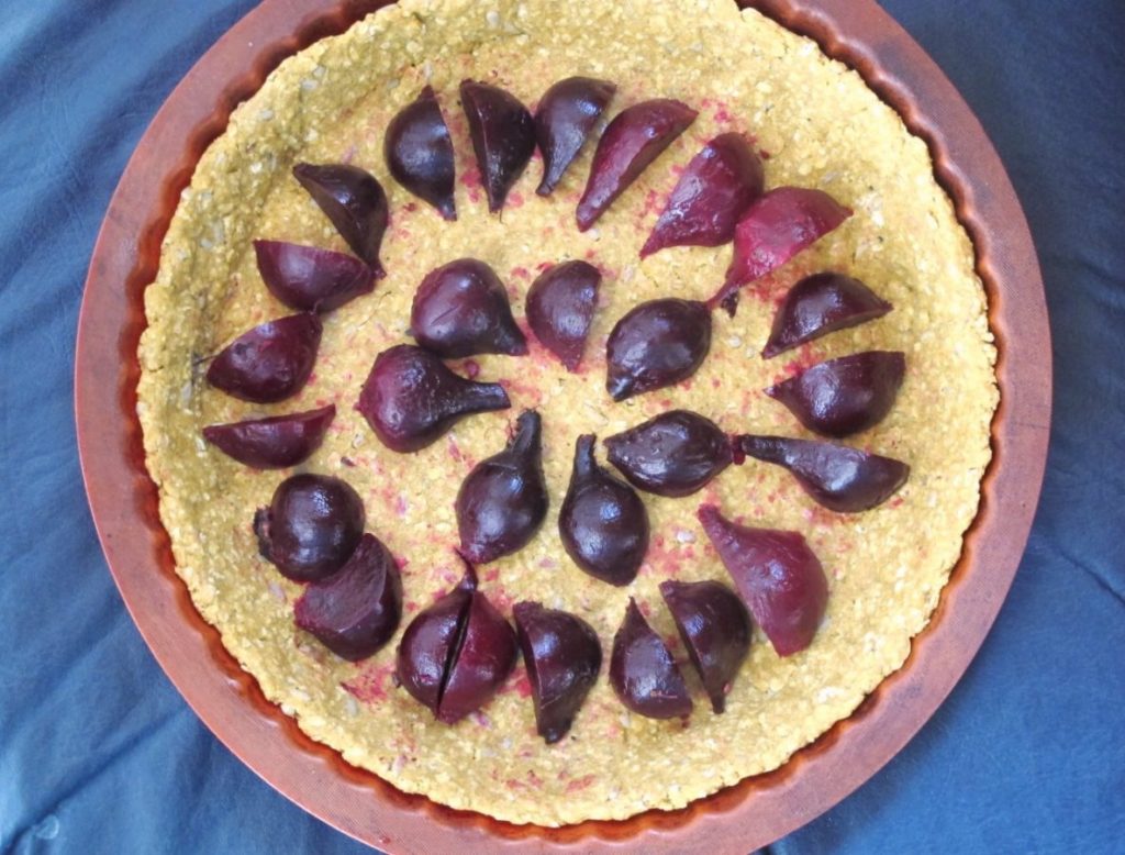Para la masa Siéntanse libres de variar las harinas, aceites y condimentos, guiándose más que nada por las proporciones a grosso modo… la masa de tarta es algo que sale cada vez mejor cuando uno practica, así de simple. - 1 taza de harina integral - ½ taza de avena arrollada entera - sal y pimienta a gusto - 1 cucharadita de cúrcuma - 75 cc. de aceite de oliva - 100 cc (más o menos, según pida la masa) de agua fría - 3 cucharadas de semillas: yo usé de girasol y de zapallo Para el relleno - 5 remolachas pequeñas o 3 grandes - 1 atado de brócoli - 2/3 taza de puré de zanahorias - 1 huevo o su equivalente en chilinaza - opcionales: queso blanco en el relleno y queso parmesano para terminar.