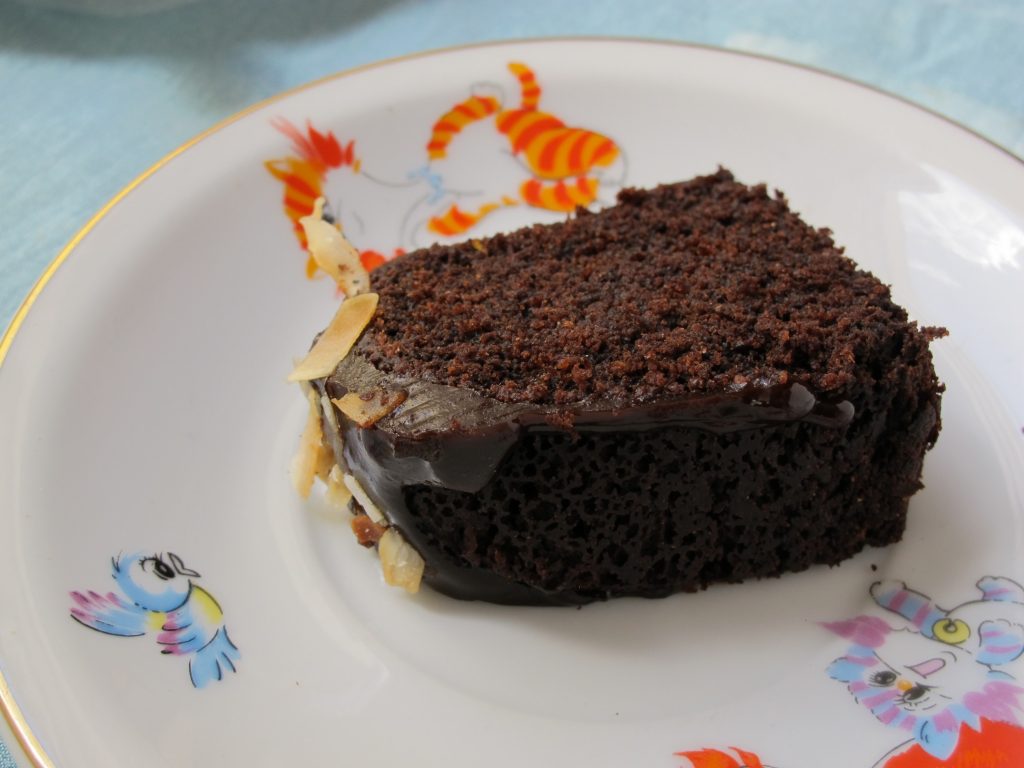 La torta queda tan húmeda, tan tierna y liviana, tan chocolatosa que la volví a hacer dos días después. Y otra vez, y otra. Así que ésta es mi torta de chocolate vegana, la que fue de Bela y luego de Jacinta, con mi agradecimiento a las dos.