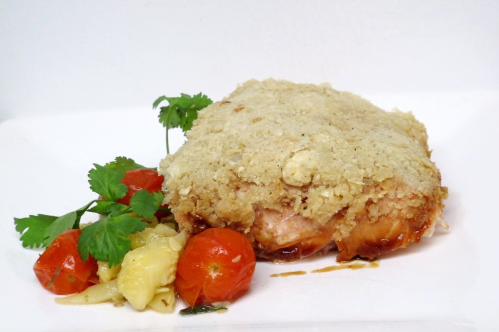 Hacer con él una costra para cubrir este salmón al horno fue un hitazo. El resultado es una mantita blanca con muuucho gusto (porque lo usamos de esponjita absorbente de sabores) y pega muy bien con el pescado. Además, la costra ayuda a que la humedad y los aromas no se escapen, y salga un pescadito bien a punto.