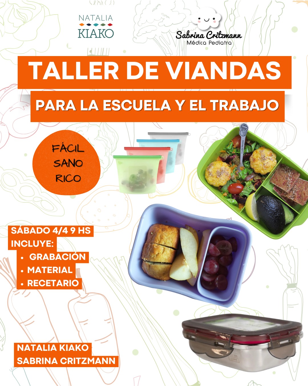 Cuándo: Sábado 4 de Abril de 9 a 11 hs, y para ver grabado cuando quieras, todas las veces que quieras, durante 20 días. Modalidad: online, por Zoom. Si no podés el 4/4, podés anotarte para verlo grabado directamente. Arancel: $50.000 Otras consultas: taller.viandas@gmail.com